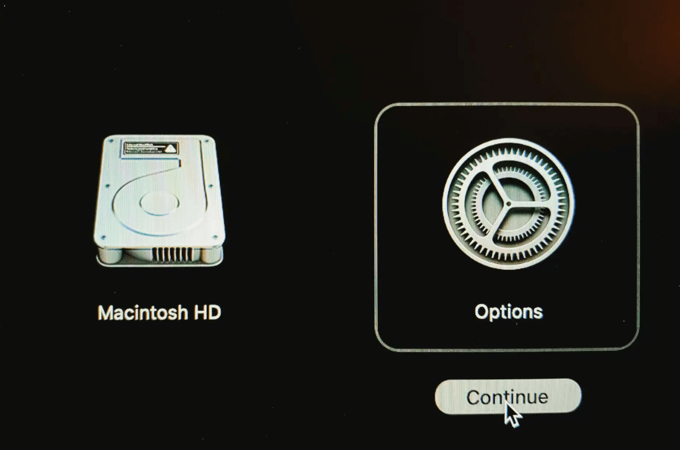 4. 옵션을 선택하고 "Continue"를 누르면 복구 모드로 진입한다.